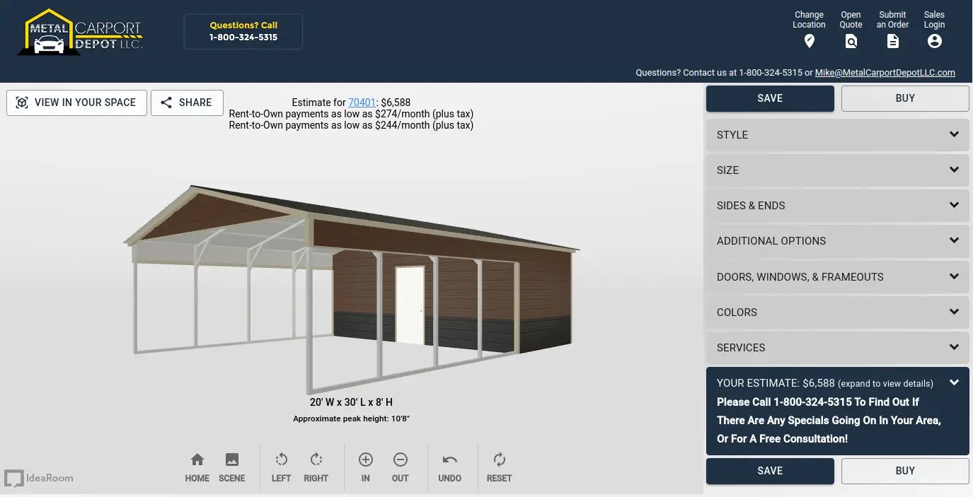 Customize your metal carport building including size and options to suit it to your unique needs using our interactive 3d configurator.